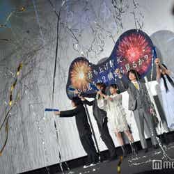 19日、都内にて映画「打ち上げ花火、下から見るか?横から見るか?」の公開記念舞台挨拶が行われ、声優を務める広瀬すず、菅田将暉、宮野真守と原作の岩井俊二氏、主題歌を担当したDAOKOが登壇した。