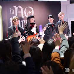 モデルで女優の中条あやみ、俳優の志尊淳、磯村勇斗、杉野遥亮による映画「覆面系ノイズ」(11月25日公開)の劇中バンド「in NO hurry to shout;」(略称:イノハリ)が31日、都内にてスペシャルイベントを開催。約300人のファンが集まる会場にて、初めてバンド演奏を行った。