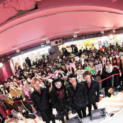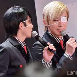 この日は、MAN WITH A MISSIONが作詞作曲を手掛け、11月15日に発売されるデビューシングル「Close to me」を初めて生演奏。ボーカルでギターの中条の「みんな盛り上がって行きましょうね!聞いてください」との掛け声で演奏スタート。中条の繊細でパワフルの美声が響く中、志尊はギター、磯村はドラム、杉野はベースを力強く弾いていた。