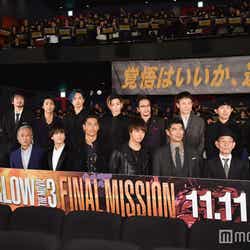 31日、都内にて総合エンタテインメント「HiGH&LOW」の新作映画『HiGH&LOW THE MOVIE 3/FINAL MISSION』(11月11日公開)の第1弾完成披露イベント「“超”完成披露試写会 FIRST MISSION」が行われ、EXILE AKIRA、岩田剛典、青柳翔、EXILE TAKAHIRO、橘ケンチ、小林直己、小野塚勇人、岩城滉一、加藤雅也、笹野高史、高嶋政宏、木下ほうか、中村達也、早乙女太一、EXILE HIRO(企画プロデューサー)、久保茂昭監督、中茎強監督、平沼紀久(脚本)が登壇した。