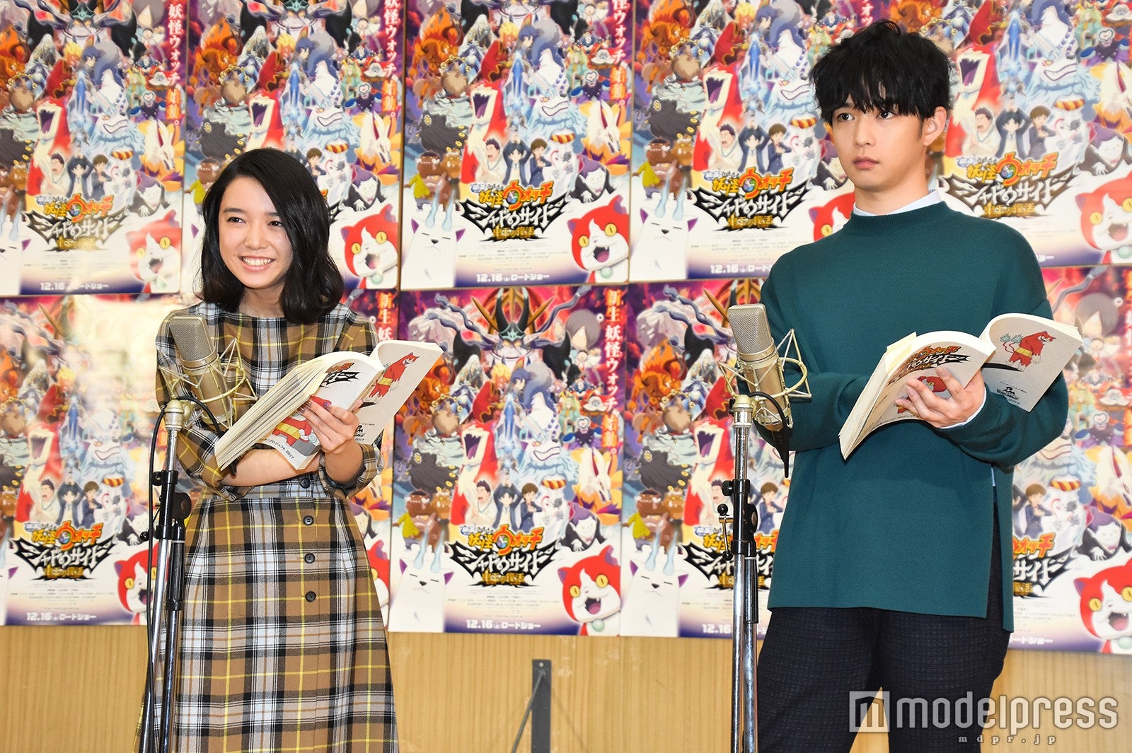 女優の上白石萌音と俳優の千葉雄大が19日、都内スタジオで行われたアニメーション映画『映画 妖怪ウォッチ シャドウサイド 鬼王の復活』(12月16日公開)公開アフレコ取材会に出席した。
