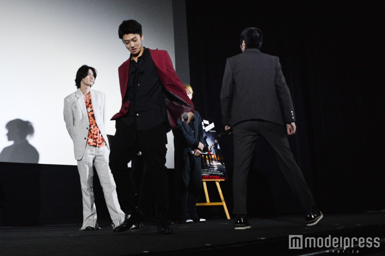 舞台挨拶では、健太郎が、山田を誘いオラオラ歩きを披露する場面も。上手、下手よりそれぞれが中央に向かい歩く中、互いの肩がぶつかると「なんや貴様。どこ中や?」(健太郎)とケンカが勃発。すると山田は「舞台挨拶中や!」とボケて笑いを誘った。健太郎との抜群のコンビネーションで観客を笑わせた山田は、撮影中の思い出を求められると「健太郎が俺の太ももで寝ていた」と仲睦まじいエピソードを紹介。健太郎演じる正樹、山田演じる正樹に匹敵する問題児・厚成が憧れる先輩を演じた柳も、撮影の思い出話を聞かれたが「撮影自体がすごく短く、みんなでワイワイすることがあまりなかった」と吐露。「暗いな!」と佐田よりツッコミが入ると「今の(オラオラ歩きの)やりとりを見てうらやましいと思った」と素直な胸中を告白した。