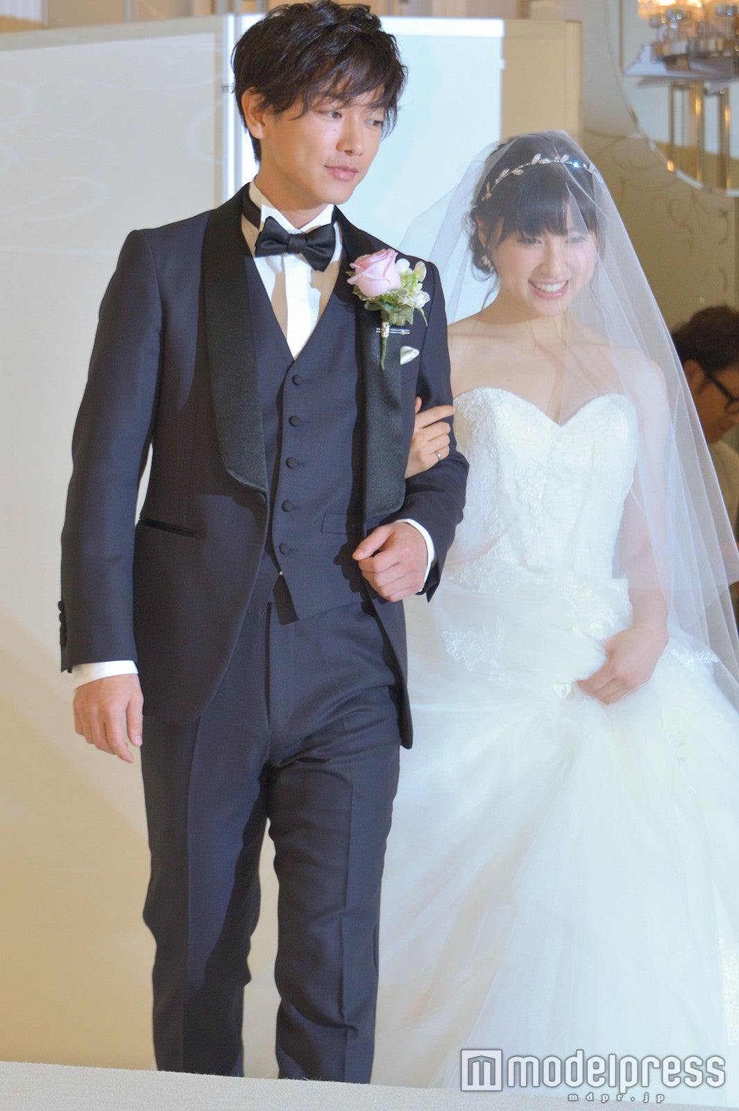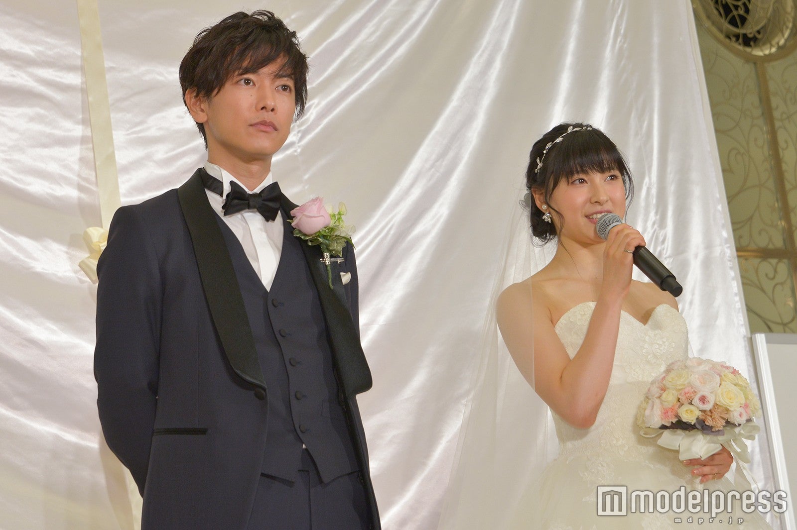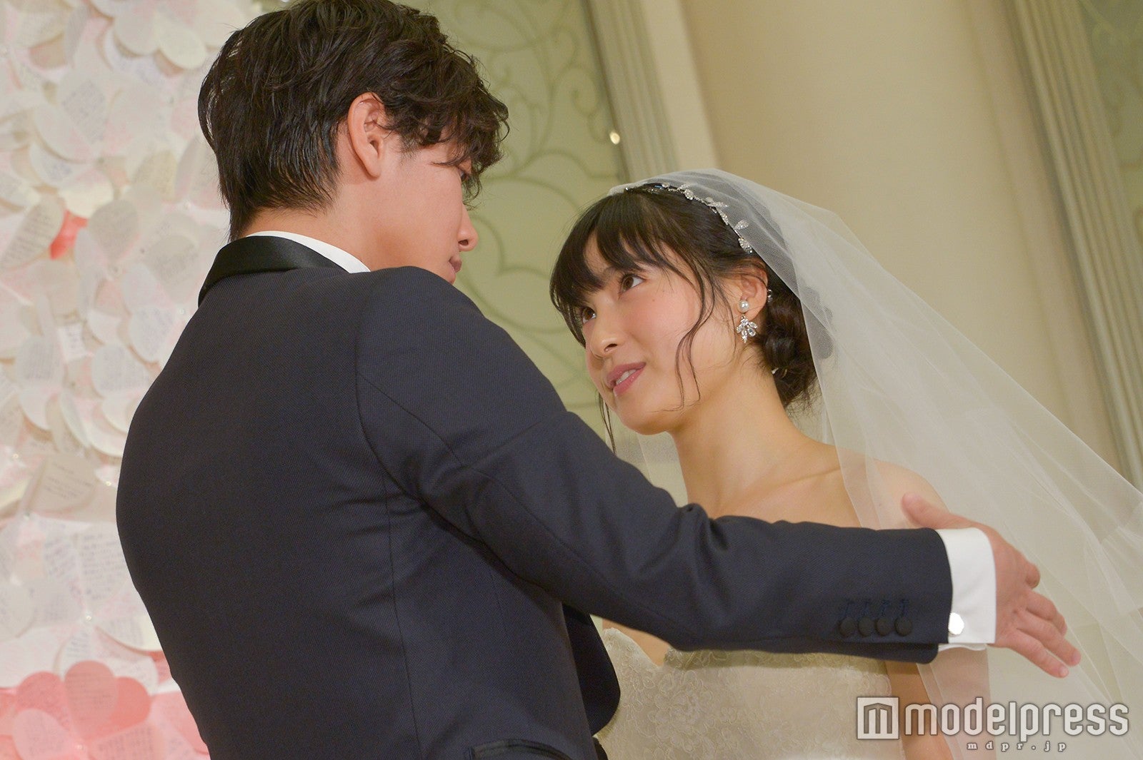 作品にちなみ、タキシード、ウエディングドレス姿で登場し、会場に集った“プレ花嫁”たちの黄色い歓声に包まれながら、バージンロードを歩いた2人。イベントではプレ花嫁からの質問コーナーが行われ、「映画に出演して実際に結婚をしたくなりましたか?」との質問が飛んだ。佐藤は「もちろん、元々いつかしたいっていう気持ちがありましたけど、(映画のモデルになった)尚志さんと麻衣さんにお会いして、間違いなく結婚の、夫婦の理想の形というものを見ることが出来たので、より憧れが強くなりました」と回答。土屋も「素敵なご夫婦にお会いして、人生を一緒に歩んでいくってこういうことなんだなと感じました。いつかは結婚に挑戦できたら。前向きに挑戦していきたいです」と笑顔を弾けさせた。
