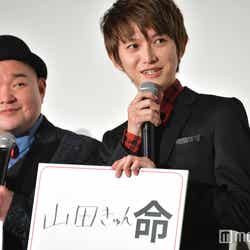 そして、“コメ命”にして“NO RICE NO LIFE”と話す佐藤は、「(演じた)ヒューズ中佐と同じで…」とペンを取り出して線を付け足し、“コメ命”から“ヨメ命”に変更。観客から拍手が上がるなか、山田が「好感度、爆上がりだな」と笑っていた。