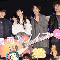 モデルで女優の中条あやみが6日、都内にて映画『覆面系ノイズ』公開記念舞台挨拶に志尊淳、小関裕太、三木康一郎監督とともに出席した。