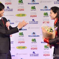 「彼女がその名を知らない鳥たち」で主演女優賞を受賞した蒼井。ビジューがあしらわれたワンピースという出で立ち。浜辺美波、北村匠海