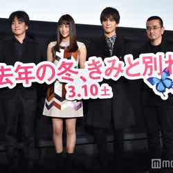 女優の山本美月が25日、都内にて行われた映画『去年の冬、きみと別れ』(3月10日公開)完成披露試写会舞台挨拶にEXILE/三代目J Soul Brothers from EXILE TRIBEの岩田剛典、瀧本智行監督、原作の中村文則氏とともに登壇した。