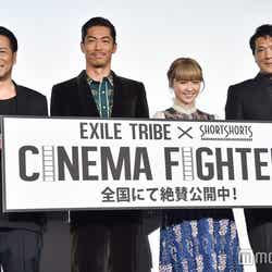 26日、都内にてEXILE TRIBEとShortShortsによるコラボレーション企画「CINEMA FIGHTERS」の初日舞台挨拶が行われ、エグゼクティブプロデューサーを務めたEXILE HIRO、企画・プロデュースを務めた別所哲也、ショートフィルムに出演するEXILE AKIRA、Dream Amiが登壇した。