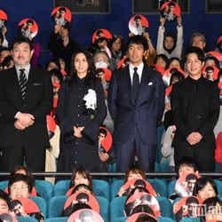 俳優の阿部寛が主演を務める映画『祈りの幕が下りる時』初日舞台挨拶が27日、都内で行われ、阿部をはじめ共演者の松嶋菜々子、溝端淳平、田中麗奈、主題歌を担当した歌手のJUJU、そして福澤克雄監督が登壇した。