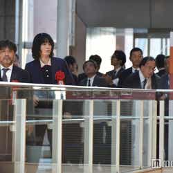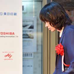 スピーチを終えると、エレベーターで降壇。観客のほうを振り返って笑顔を見せるなど、セレモニーの空気を楽しんでいた。