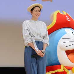 女優の長澤まさみが25日、都内で行われた「映画ドラえもん のび太の宝島」(3月3日公開)の完成披露舞台挨拶に、お笑いコンビ・サバンナの高橋茂雄、脚本の川村元気氏、今井一暁監督と出席した。