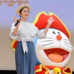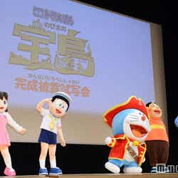 ドラえもんの秘密道具“宝探し地図”を手に、ノビタオーラ号船に乗って、太平洋上に突然現れた謎の島に向かったのび太たちが、海賊との戦いや、島に隠された宝に秘められた真実を追うさまを描いた同作。長澤は、のび太たちと対峙する海賊船の船長キャプテン・シルバー(声:大泉洋)の妻で2人の子どもを持つ科学者・フィオナの声を担当した。この日は、ドラえもん、のび太、しずか、ジャイアン、スネ夫も登場しており、長澤のキュートな魅力にメロメロのスネ夫は、「最終的には、イケメンで超絶お金持ちの僕ちゃんが1番だというのはわかっているけど、僕たち4人の中で1番男らしくて格好いいのは誰ですか?」と質問。