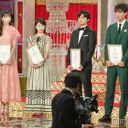 新人俳優賞を受賞した中条あやみ、浜辺美波、北村匠海(DISH//)、竹内涼真の4人が登壇。「君の膵臓をたべたい」で浜辺美波&北村匠海がW受賞
