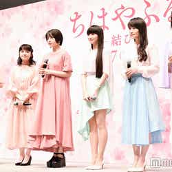広瀬すず主演の映画『ちはやふる-結び-』(3月17日公開)の“無限未来宣言”試写会イベントが6日、都内にて行われ、広瀬、上白石萌音、優希美青と主題歌を歌うPerfume(かしゆか、あ~ちゃん、のっち)が登壇した。