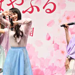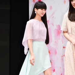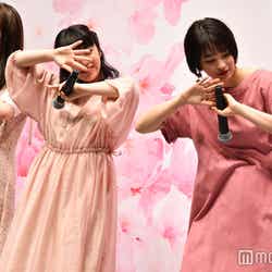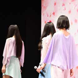 この日、キャスト3人は春をテーマにそれぞれ違うピンクの衣装で、Perfume3人はパステルカラーを取り入れた衣装で、会場を華やかに彩った。