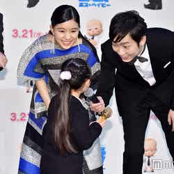 舞台あいさつ冒頭、子役スタッフがマイクを手渡されると、キャスト陣はメロメロな表情を浮かべ、ムロは「ありがとう!可愛いねえ。ありがとう生まれてきてくれて…」と目を細めた。そんな子役スタッフから、どんなところを見てほしいか尋ねられたムロは「中身がオッサンなんですけど、やっぱり赤ちゃんというところが可愛いかなと思うので、そういう部分を皆さんに見てほしいかなと思っています」と答え、子役スタッフから真っ直ぐな目で見られると「超可愛い(笑)」頬を緩めた。続けて、特にお気に入りのシーンを聞かれた芳根は「たくさんあって、ムロさんが転げ落ちる…ムロさんは転げ落ちないですね(笑)。ボス・ベイビーが転げ落ちるところのムロさんの声だったり、ベッドによじ登るときの声だったり、赤ちゃんに代わっちゃうとムロさんの声じゃないんですけど、そのムロさんと赤ちゃんの狭間のムロさんが赤ちゃんの声をやっているあの部分!がお気に入りです」と紹介し、ムロから「ありがとう。いい子」と感謝された。