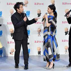 映画「ボス・ベイビー」(3月21日公開)のブルーカーペット&ジャパンプレミアが7日、都内で行われ、日本語吹替えを担当したムロツヨシ、芳根京子、乙葉、石田明(NON STYLE)が登壇した。