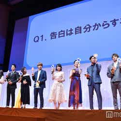 両親のパートナーチェンジによって、突然1つ屋根の下で暮らすことになった同い年の高校生・光希(桜井)と遊(吉沢)のラブストーリー。演じる中でお互いに胸キュンしたことを聞かれると、吉沢が「ずっと(桜井に)キュンキュンしてました」と即答し、「お芝居の流れでもキュンキュンしますし、彼女のちょっと人類じゃない…精霊感があるじゃないですか。ちょっとミステリアスというか…妖精みたいなんですよ」と桜井が持ち合わせる独特の雰囲気を説明。「でも一緒にやってみるとすごくノリもいいし、面白いしすごく人間的なんですよね。何と言ったらいいのか…雰囲気は妖精、中身は人間!」と表現する吉沢に、桜井は「(今日着ている)服ですかね?」と首をひねり、ピンと来ない様子。「服とかではない。なんかトータルが妖精。ちょっと近寄りがたいというか…」としどろもどろになる吉沢に、劇中で父親役を演じる谷原が「すごくわかるよ。色んな表情があるから“これ”って言い切れない。色んな面があるってことでしょ?」と助け舟を出すと、吉沢は「そういうことです!」と即座に同意し、笑いを誘った。