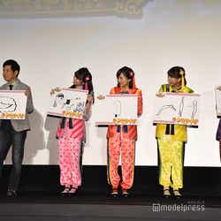 ももいろクローバーZ(百田夏菜子、玉井詩織、佐々木彩夏、高城れに)が14日、『映画クレヨンしんちゃん 爆盛!カンフーボーイズ ~拉麺大乱~』公開記念舞台挨拶に、タレントの関根勤、野原しんのすけ役の矢島晶子、野原みさえ役のならはしみき、野原ひろし役の森川智之、そして高橋渉監督とともに出席した。
