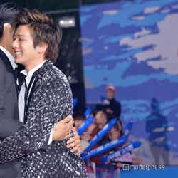 新田演じる天才ドライバー・檜山直純のライバルである新海彰を演じた北村。これまでにも共演が多く、仲が良いことで知られるが、この現場でもそれは変わらずだったよう。新田は北村がいない間、現場にあった大きな北村の顔写真の頬をぷにゅぷにゅしていたそうで、「かっこいいの、これ。すごいかっこいいんだ」と惚れ惚れ。北村は「俺がいないとこですなよ!」と照れ笑い。