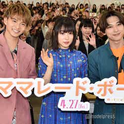 吉沢亮&EXILE佐藤大樹、“ご褒美”で肩組み密着 桜井日奈子と女子大をサプライズ訪問<ママレード・ボーイ>