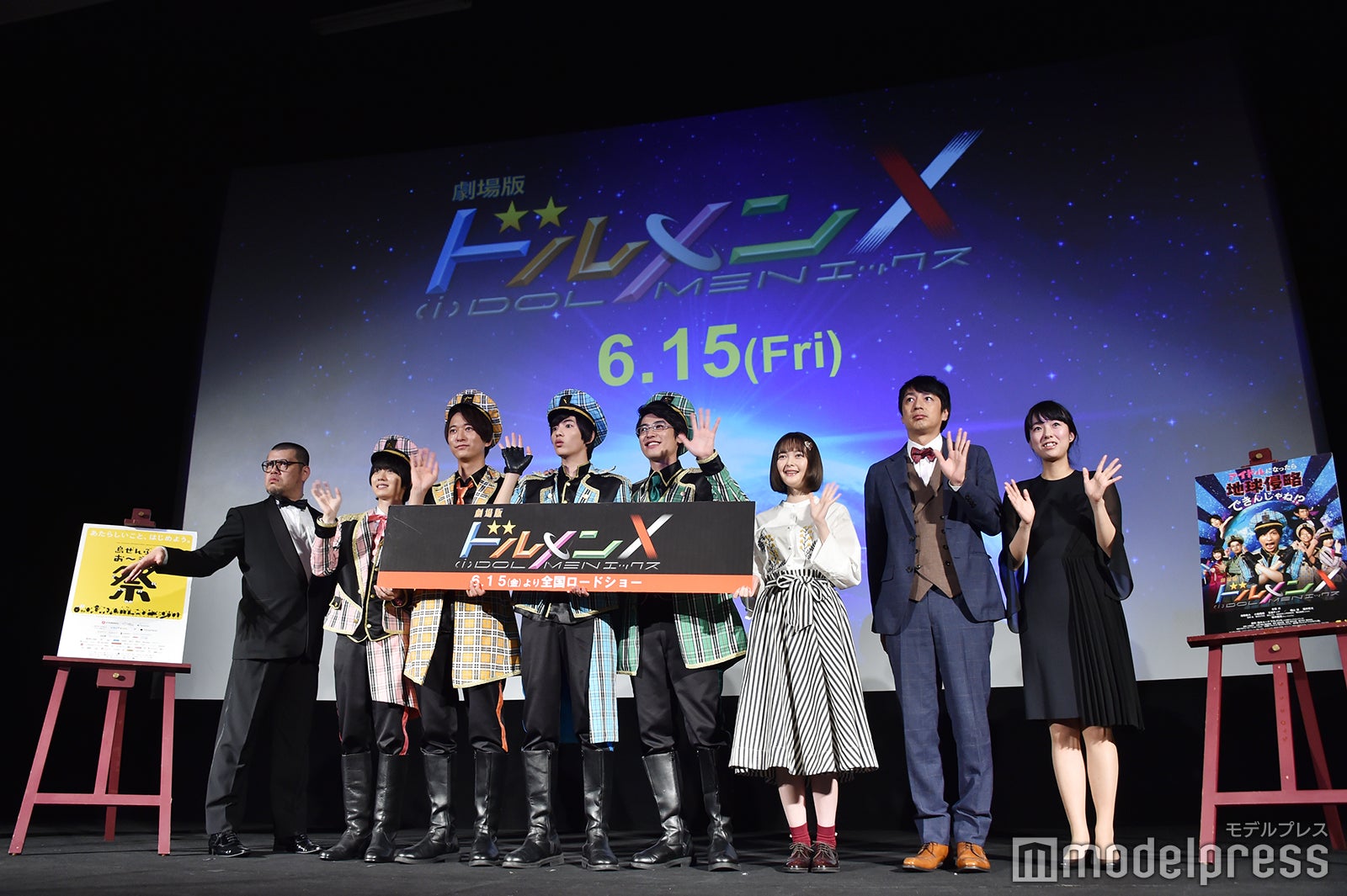 志尊演じる“隊長”が率いるイケメン宇宙人たちが劇中衣装で登壇すると会場は黄色い歓声。ドルメンXのマネージャー・ヨイ(玉城)に対し隊長が「なんてかわいいんだ!」とつぶやき、イチイ(浅香)が「隊長、心の声が漏れてる」とつっこむくだりも再現され、笑いの絶えない会場で志尊が「(現場も)本当にこんな感じですね」と仲睦まじい関係を伝える。