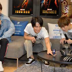 俳優の中川大志と花村想太(Da-iCE)、小野賢章が26日、都内にて映画「ブラックパンサー」MovieNEXが発売決定したことを記念してMARVEL男子会を行った。