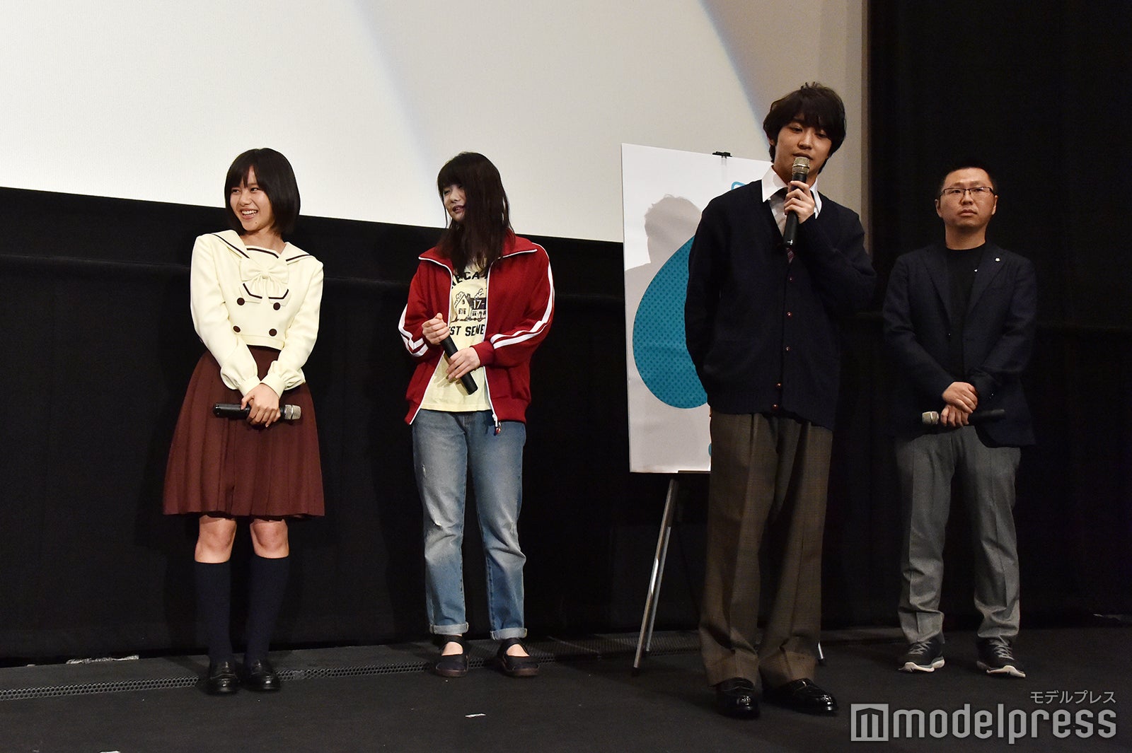 さらに、横浜のどんなところが優しかったか尋ねられた松風は「そうですね…。緊張しているときとかに笑わせてくださったり、たくさん話し掛けてくださったので、優し…かったです」とたどたどしくコメント。しかし、小野は「横浜さんは理咲ちゃんにウザい絡み方をしていて、理咲ちゃんはそれに一生懸命に応えていた」とエピソードを明かし、さらに「(横浜が松風に)舞台裏でずっと『優しいって言ってよ!お願いだよ』って言っていた」と暴露すると、横浜は「今日はいろいろ荒れるぞ…」と戦々恐々。続けて、どんなウザい絡み方をされたのか聞かれた松風は「自覚ありますか?答えのないような質問を…」と横浜を見つめて笑いを誘い、これに横浜は「そこはあえて答えづらいことを聞いていたのかも知れませんね。ちょっとでも距離を近づけたくてやっていたんですよ」と言い訳をすると、松風は「その努力は感じられて感動しました」とフォローした。また、壮太の従弟で、まいを好きになってしまう加賀樹を演じる松岡は、同作でクール男子を演じていることについて聞かれると「演じるにあたって、まず外見から入って、声のトーンなどを調節しながら、加賀樹も恋愛が初めてですが、西野壮太と僕(加賀)の恋愛の仕方もまったく違ったので、そのメリハリをハッキリと見せたいと思いました」と語り、「見どころとしては、僕がクッキーを食べるシーンがあるんですけど、そこはすごい顔をしているんですけど、振り切ってやっているので、ぜひ見てください」とアピールした。
