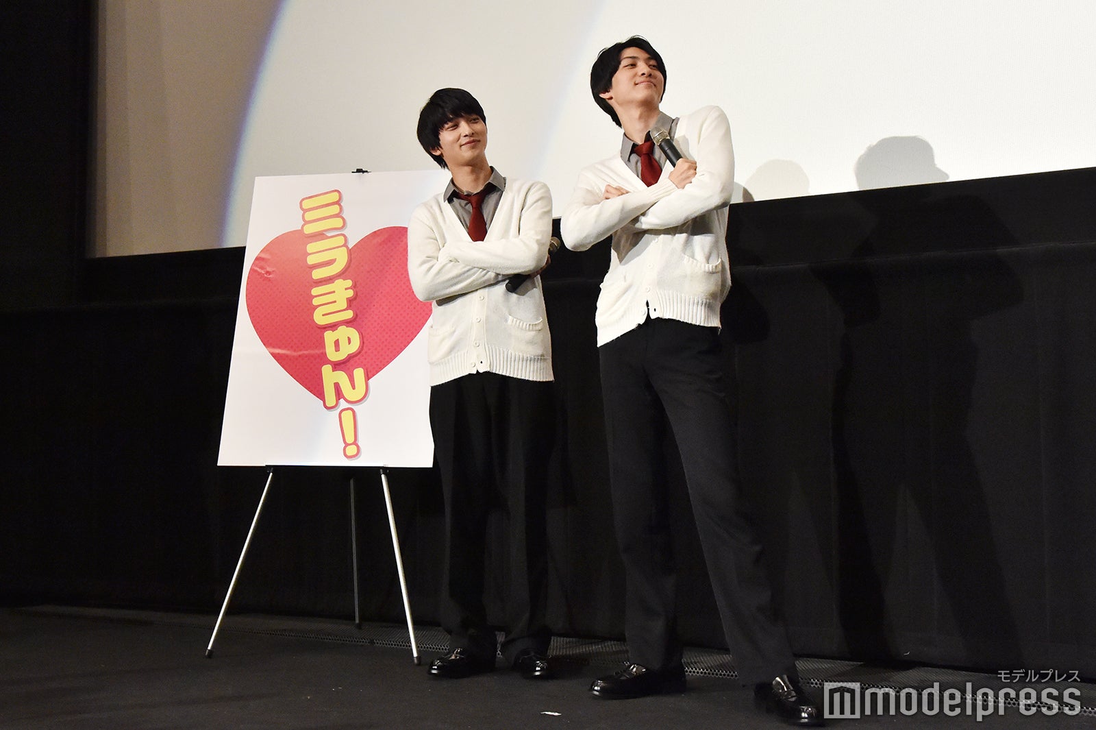 また、壮太の従弟で、まいを好きになってしまう加賀樹を演じる松岡は、同作でクール男子を演じていることについて聞かれると「演じるにあたって、まず外見から入って、声のトーンなどを調節しながら、加賀樹も恋愛が初めてですが、西野壮太と僕(加賀)の恋愛の仕方もまったく違ったので、そのメリハリをハッキリと見せたいと思いました」と語り、「見どころとしては、僕がクッキーを食べるシーンがあるんですけど、そこはすごい顔をしているんですけど、振り切ってやっているので、ぜひ見てください」とアピールした。