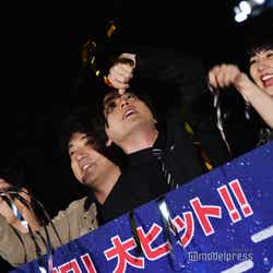 山田も「たしかにあれは良い思い出ですね」と賛同し、福田監督は「でも、入ろうよって誘ったのは俺だから。褒めて」とアピール。しかし、山田は「でも、そこまで(長澤の気持ちが)高ぶったのは僕がドン・キホーテ行って素麺を大量に買って、すごく頑張って茹でて、最初は1分半はかってたのを後半は箸に当たるだけで茹で具合がわかるぐらいプロ化してきて、タイマーなんかいらない!って…(以下、爆笑の渦)」と張り合っていた。ムロは改めて「濡れたTシャツの後ろ姿がすっごい綺麗なの。スタッフと一緒に盗み見しながら“ハワイいいなあ”って。その後に孝之が素麺持ってくる」とにんまり。