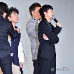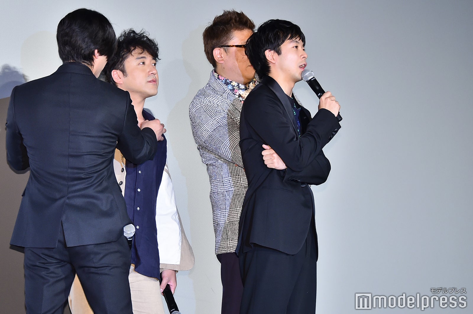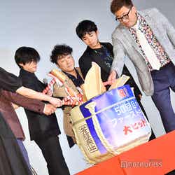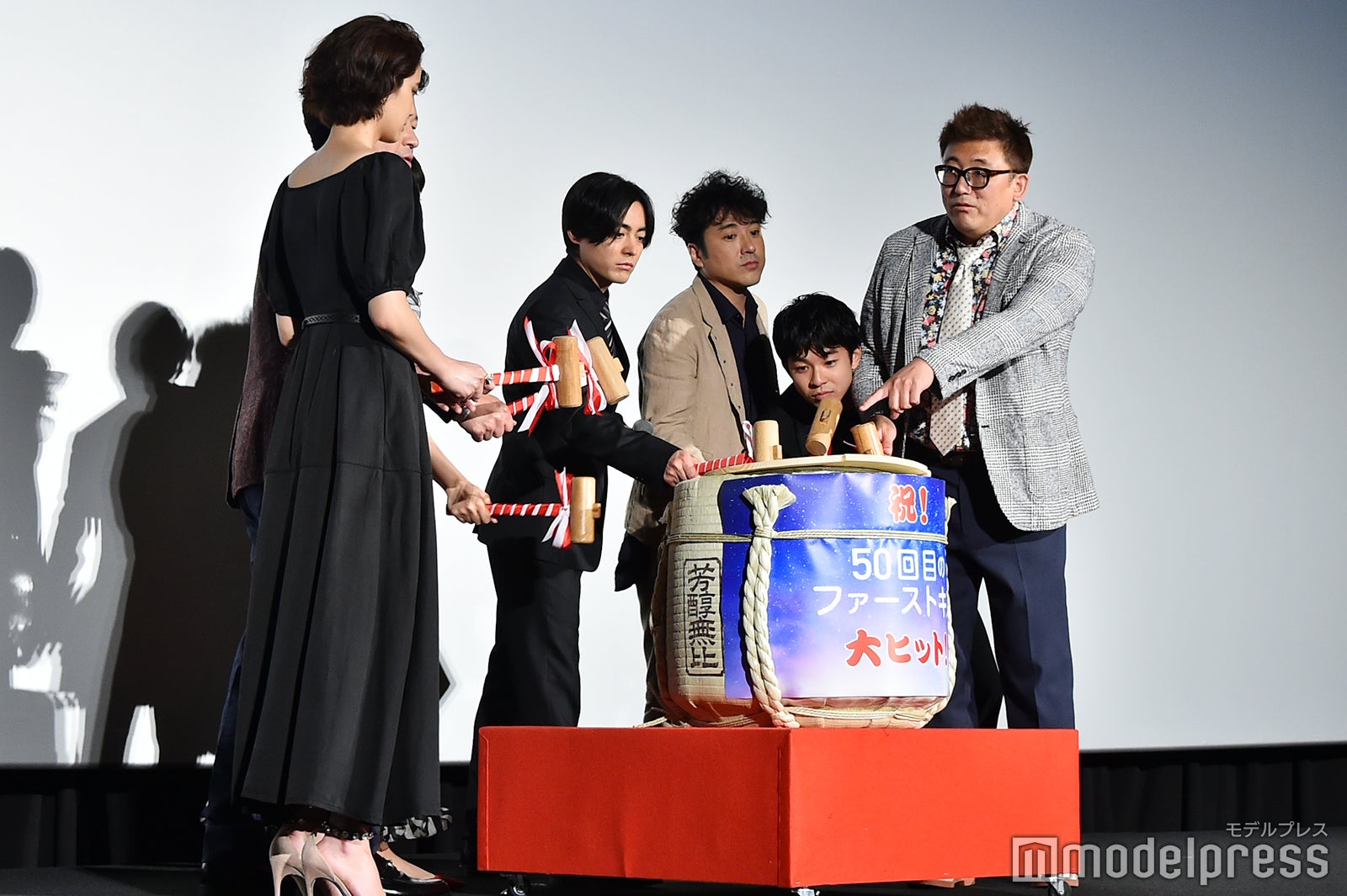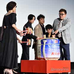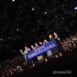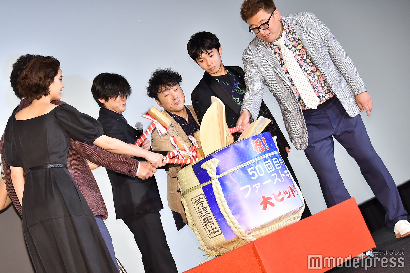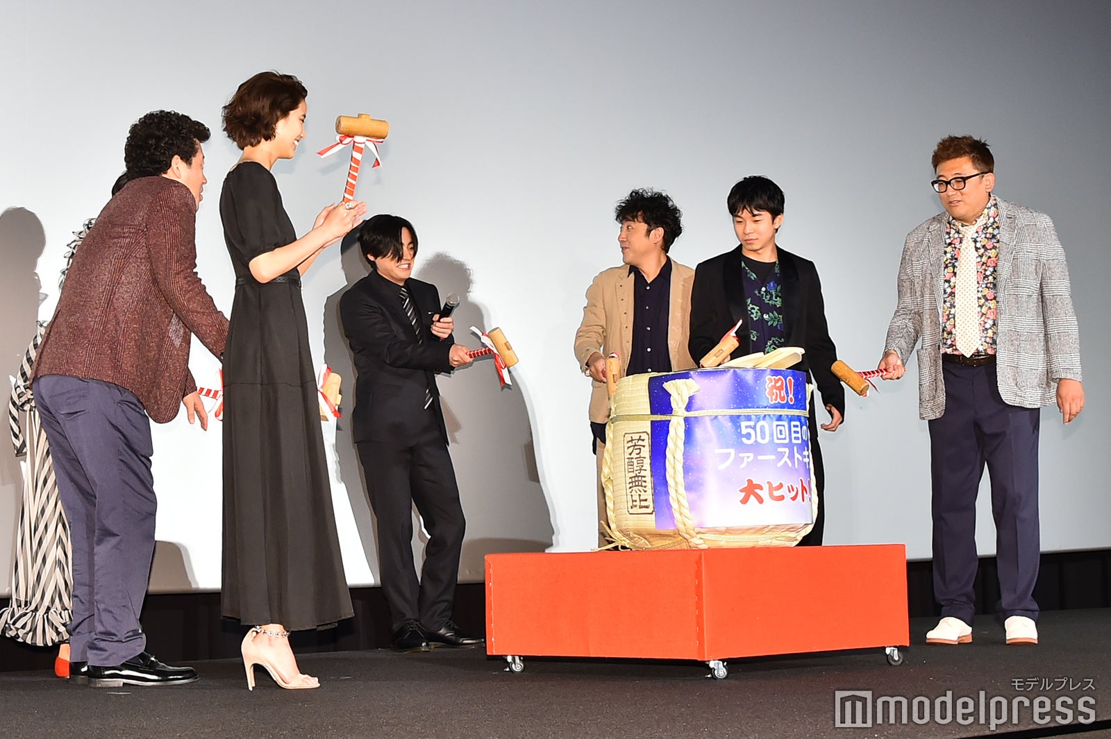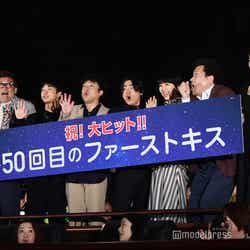 2日、都内で映画『50回目のファーストキス』の公開記念舞台挨拶が行われ、主演の山田孝之、長澤まさみ、共演のムロツヨシ、佐藤二朗、太賀、山崎紘菜、福田雄一監督が出席した。