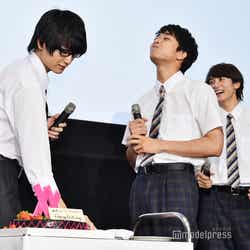 イベントでは8日に23歳の誕生日を迎える小関のサプライズバースデーを実施。特大バースデーケーキが登場すると小関は「うれしい!普通に戸惑っています」と照れ笑い。ここで小関への“あーん”を命じられた玉城は「やだよぉ。みんなに怒られるでしょう?」と女性ファンを前に恐縮しながらも、フォークにいちごを刺してその役割を全うし、「申し訳ございません!」と丁寧に陳謝して笑いを誘った。続けて16日に22歳の誕生日を迎える佐藤の祝福も。こちらは金子が“あーん”をして会場を沸かせていた。