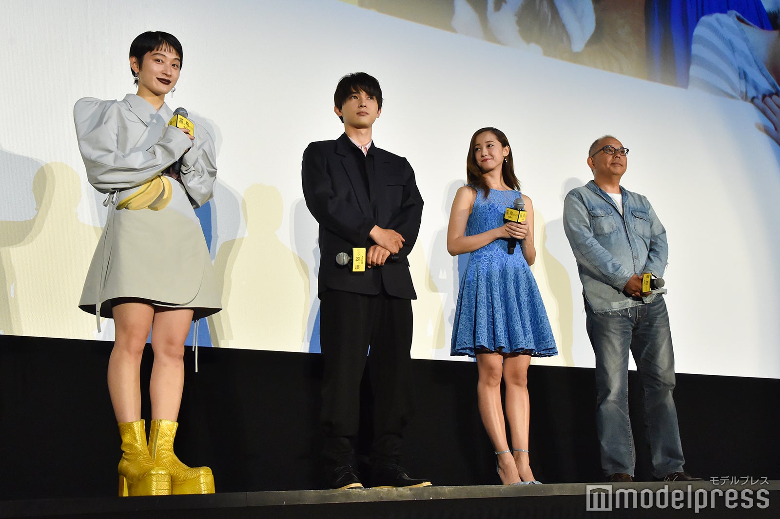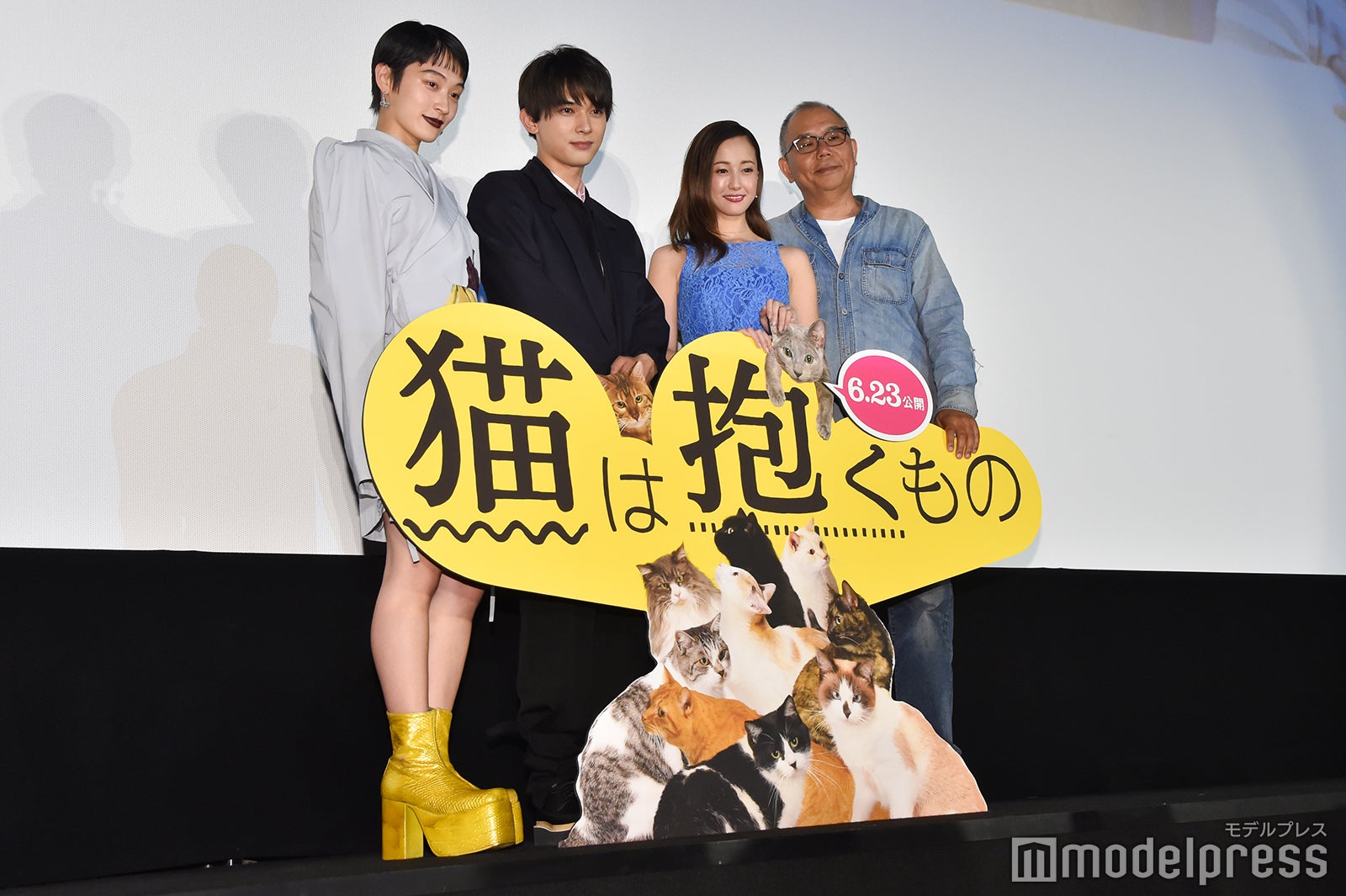 俳優の吉沢亮が5日、都内で行われた映画「猫は抱くもの」(6月23日公開)の完成披露試写会舞台あいさつに、女優の沢尻エリカ、水曜日のカンパネラのコムアイ、メガホンをとった犬童一心監督とともに登壇した。