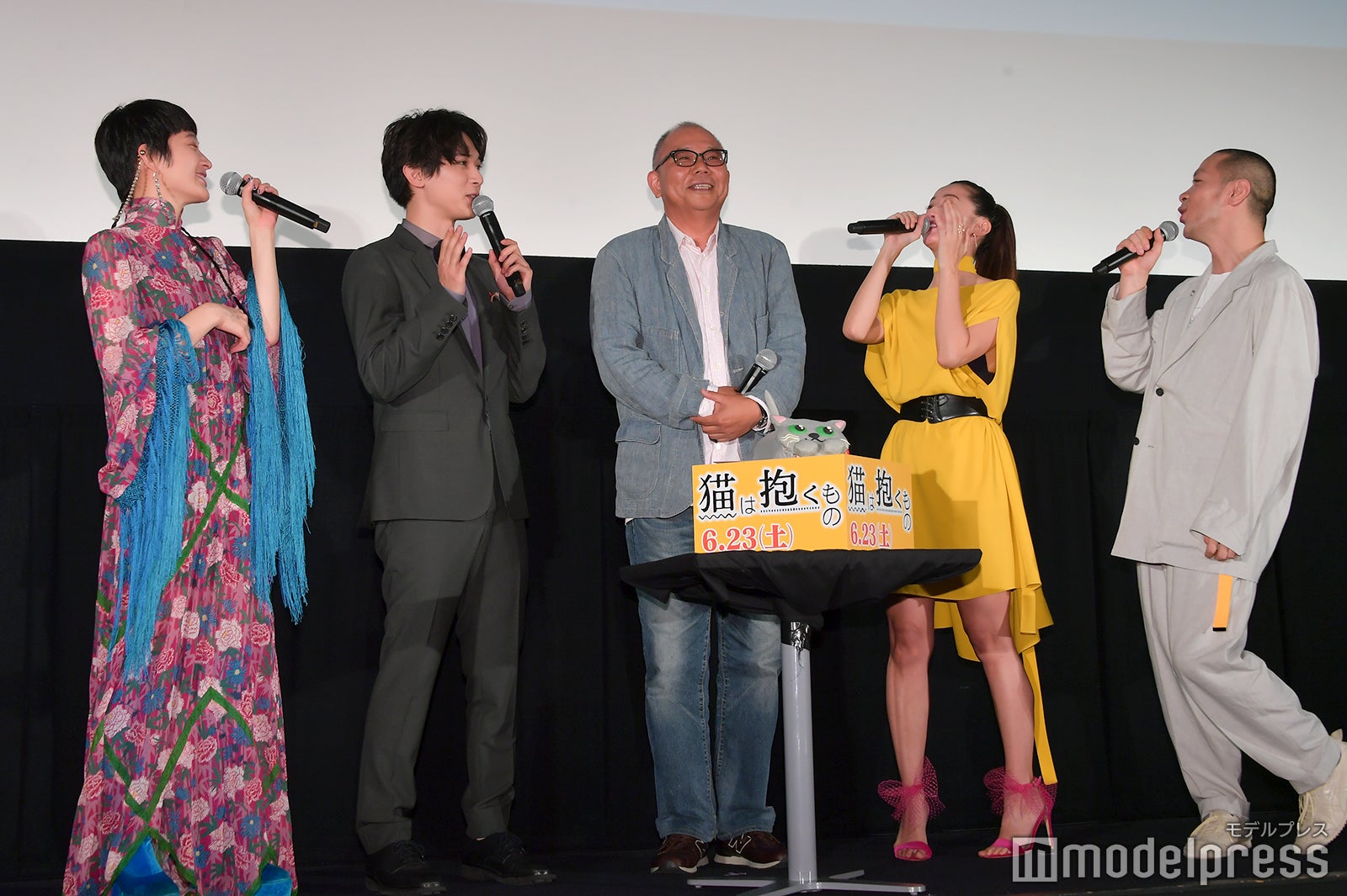 女優の沢尻エリカが23日、都内で行われた映画「猫は抱くもの」の初日舞台挨拶に、吉沢亮、峯田和伸、コムアイ(水曜日のカンパネラ)、犬童一心監督と出席。 サプライズを受けた。