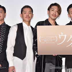三代目J Soul Brothers from EXILE TRIBEの山下健二郎が23日、都内にて行われた映画『ウタモノガタリ-CINEMA FIGHTERS project-』 (公開中)公開記念舞台挨拶に俳優の加藤雅也、岸本司監督、主題歌を歌うDEEPとともに登壇した。