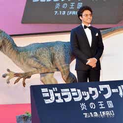 俳優の玉木宏が27日、都内にて行われた映画『ジュラシック・ワールド/炎の王国』(7月13日公開)ジャパンプレミアに木村佳乃、満島真之介、石川由依、住田萌乃、クリス・プラット、ブライス・ダラス・ハワード、J・A・バヨナ監督、コリン・トレボロウ製作総指揮とともに登壇。玉木にとって、今月21日に女優の木南晴夏との結婚報道後、初の公の場となった。