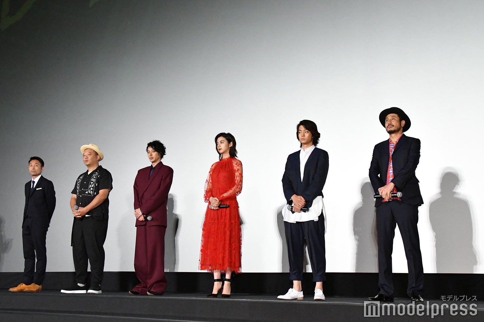 モデルで女優の池田エライザ、俳優の伊藤健太郎が7日、都内にて開催された主演映画「ルームロンダリング」の公開初日舞台挨拶に、オダギリジョー、渋川清彦、木下隆行(TKO)、片桐健滋監督と出席した。