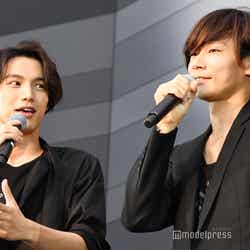 福士の話を隣で聞いてた川上は「いい奴だ」と口に。「照れますね。嬉しい」と歓喜し、「何でしょう。楽曲を褒められたことよりも、俺の横で[ALEXANDROS]を褒めてくれたことが…」と感慨ひとしおの様子。福士が「ドロスさん」と呼んだことも嬉しかったそうで、福士の肩に思わず手を当て「洋平って言ってくれても大丈夫です」と軽快なトークを披露し、双方のファンから大歓声を浴びた。
