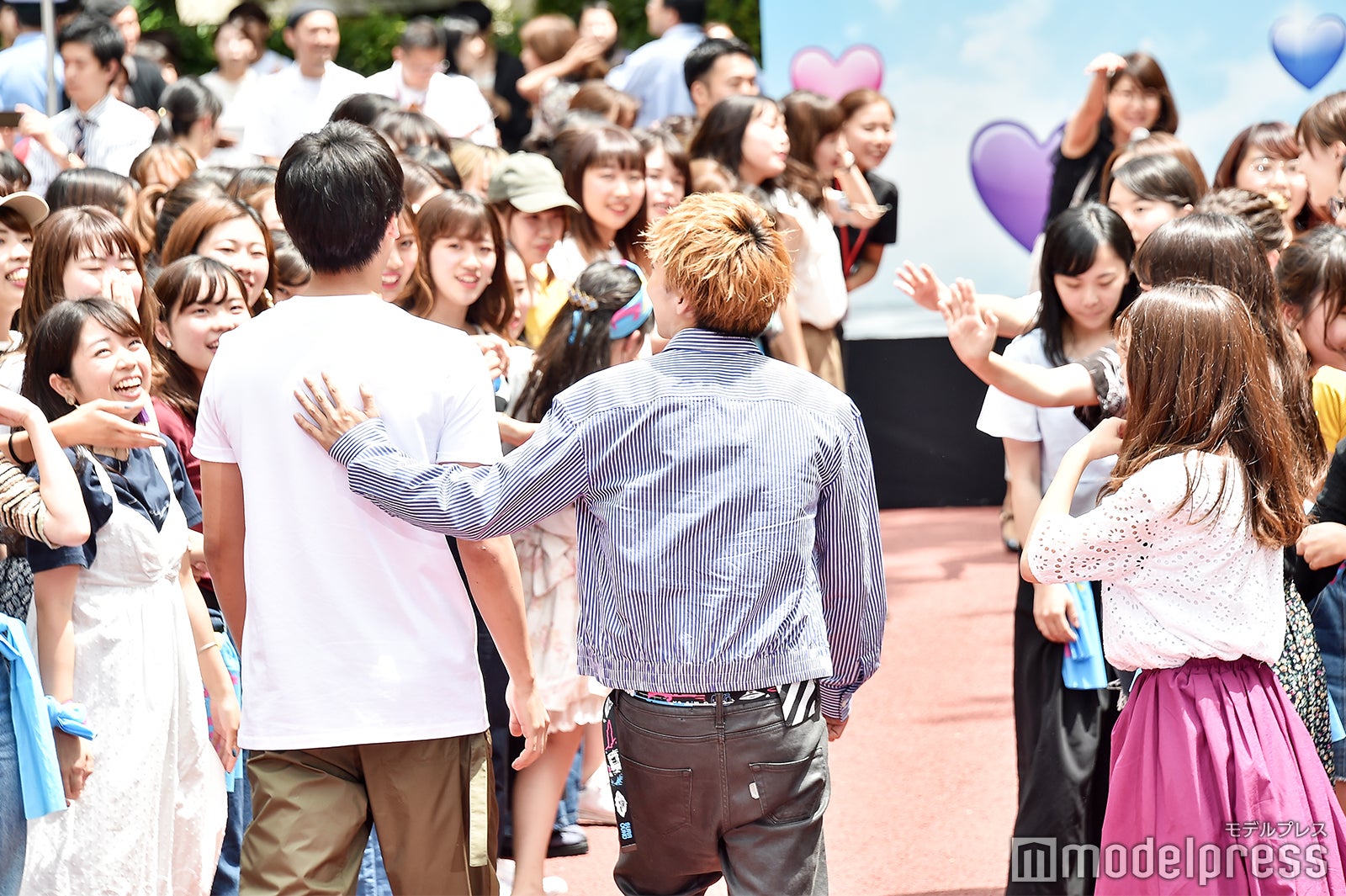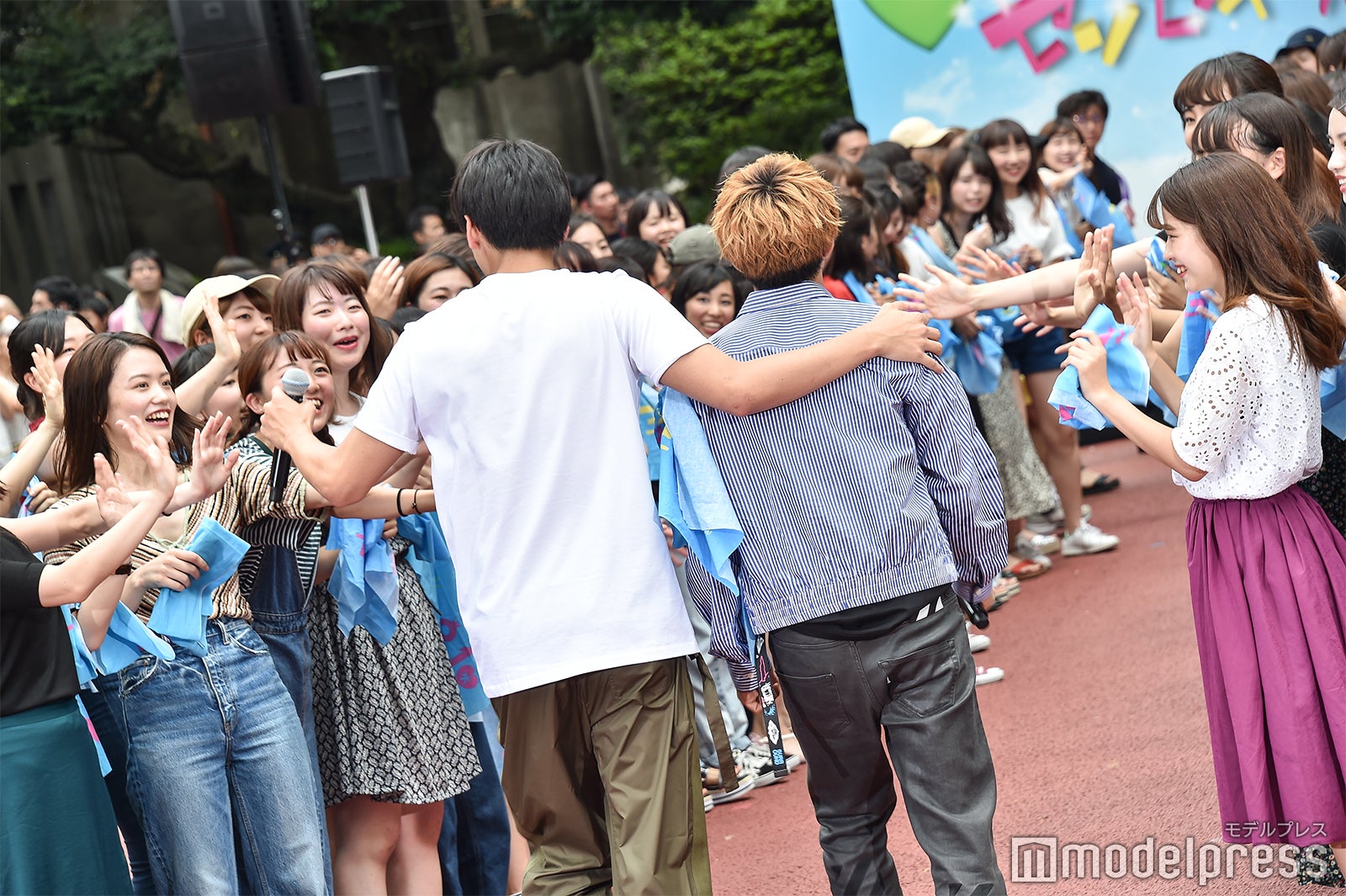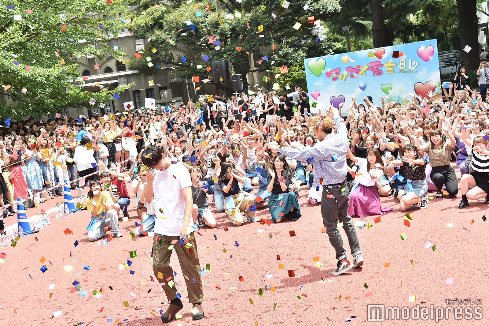 佐藤は「この映画のために毎日宣伝活動を頑張ってくれているので、少しでもパワーを送れたり、笑顔になってもらえたらって」と、竹内のために早朝からリハーサルに臨むなど準備を進めていたそう。これに竹内は「(フラッシュモブを)テレビでしか見たことがなかったから、めちゃめちゃびっくりして…。本当に嬉しいです。青学、最高ーー!!」と感激し、「本当に嬉しい!25年間生きてきて一番嬉しい!!」と笑顔を見せると、佐藤も「やったよ、皆!」と喜んだ。