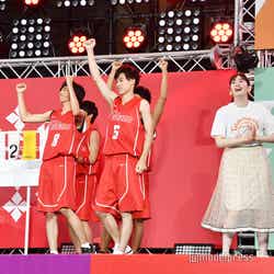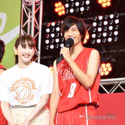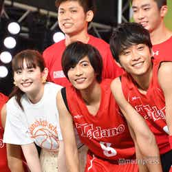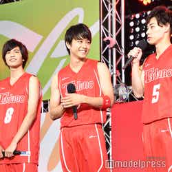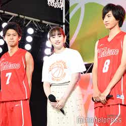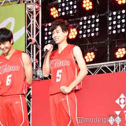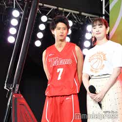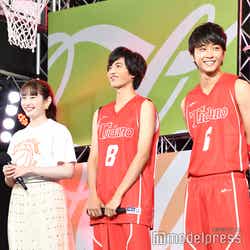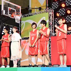 (前列左から)鈴木勝大、早見あかり、志尊淳、佐藤寛太、戸塚純貴(後列左から)川崎ブレイブサンダースU15・近藤亮太郎選手、川崎ブレイブサンダース・藤井祐眞選手、千葉ジェッツ・原修太選手、千葉ジェッツU15・廣岡大翔選手(C)モデルプレス バスケ部のユニフォーム姿となるタンクトップスタイルで登壇した志尊。特報映像を観て「撮影は去年だったのですが、懐かしい思いと、こんなに素敵な青春を疑似体験させてもらったんだなという気持ちになりました」と声を弾ませると、早見も「合宿だったよね、完全に」と笑顔で回顧。バスケの練習も積んだそうで、登壇者たちは充実した時間を過ごしたエピソードを語った。