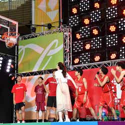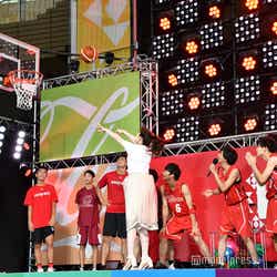 野外会場のステージには風も吹き付け、さらに、ビーチボールを使ったため、プロのバスケ選手たちも大苦戦し、勝負は5本投げて両チームとも1本成功という引き分けになった。ここで志尊が「せっかくなので」と、片方が成功しもう片方が失敗した時点で勝敗を決める延長戦を提案。志尊の提案に詰め掛けたファンから大歓声が上がった。