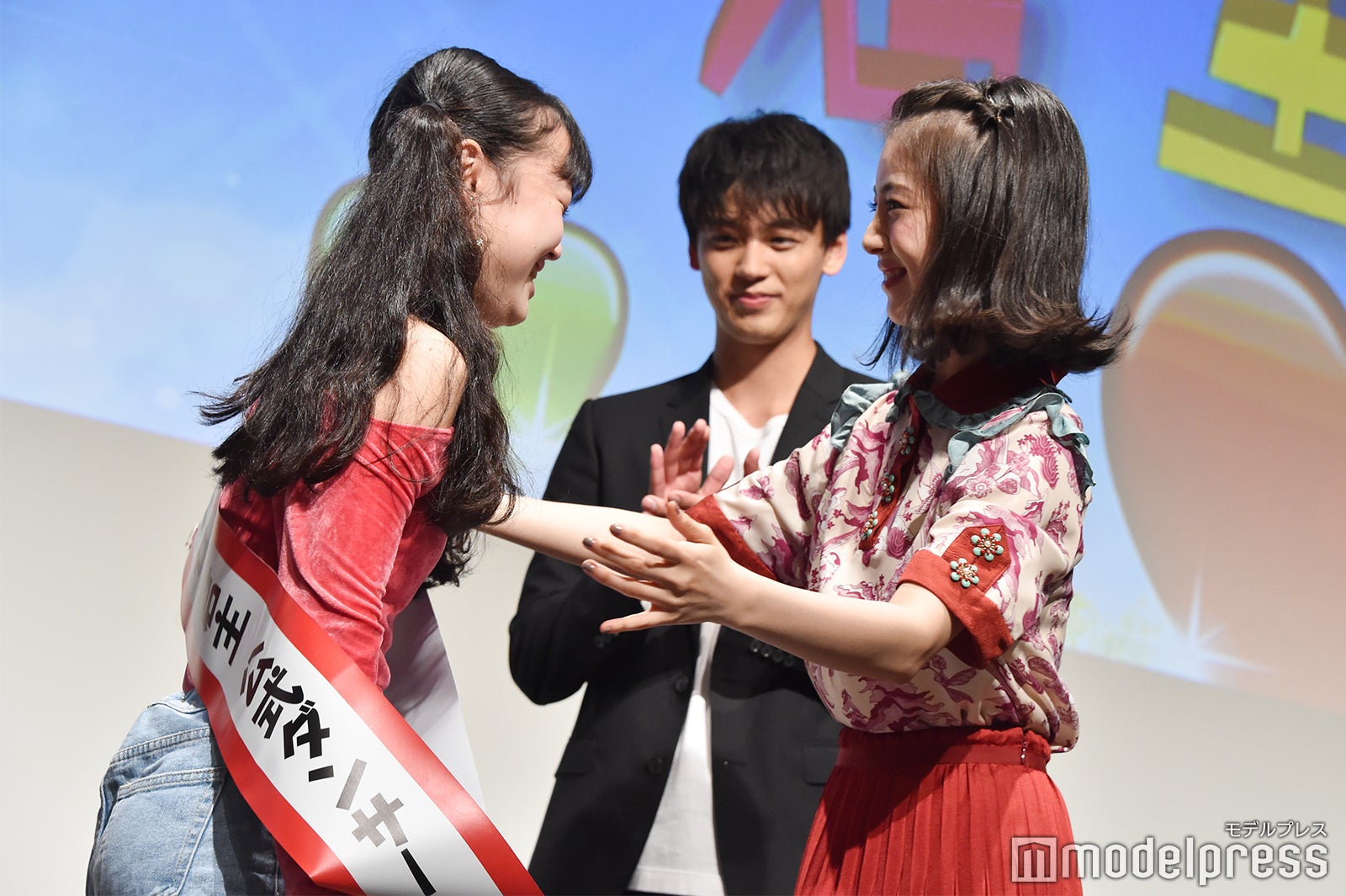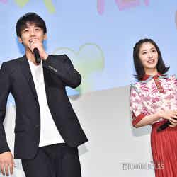 さらに、周囲の反響を尋ねられ、竹内が「お母さんが昨日、2回目を見に行った」と明かすと、浜辺も「私のお母さんも1人で2回見てくれました」とコメント。母親はどんな反応だったか追求された竹内は「泣いたらしいですよ。試写会に1番最初に来てくれて、そのあと一緒にご飯に行ったんですけど、目が腫れてましたね」と感慨深げな表情。浜辺も「私も祖母が見てくれて『面白かった』って言ってくれました。『竹内涼真、素敵やったね』って」といい、これに竹内は「ありがとっ!」と笑顔を浮かべた。