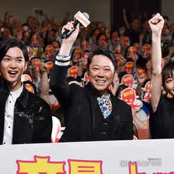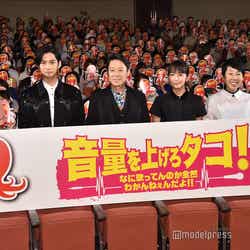 同作は、4オクターブの音域とすべての人を虜にする声量を持つ一方、“声帯ドーピング”というオキテ破りな秘密を抱えるロックスター・シン(阿部)と、シンとは対照的に異様に声が小さく何事にも逃げ腰なストリートミュージシャン・ふうか(吉岡)の正反対の2人を中心に展開するハイテンション・ロック・コメディ。明治大学応援団による応援歌&文字切り披露が行われた後、応援団に呼び込まれ、応援団風のあいさつをして会場を盛り上げた登壇者の面々。その後、感想を聞かれた阿部は「なんすかね、これ…。声を出せって言われていたので、逆に迷いはなくなりましたけどね」と困惑した。