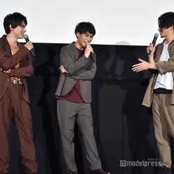さらに、同じく『銀魂』のイベントで「俺なんも買ってもらってない」「何買ってもらおっかな~。ベッドかな。洗濯機でも可」と公開おねだりしていた吉沢が「その日中に小栗さんから『よし、何買うか』ってLINEが来た」と明かし、会場からは驚きの歓声。「こんなカッコよすぎる男前の座長のいる現場にいられて幸せだなって思ってます!」と叫び、小栗を照れさせていた。