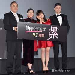 女優の土屋太鳳と芳根京子が7日、都内で行われたW主演映画『累-かさね-』の初日舞台あいさつに、俳優の浅野忠信、メガホンをとった佐藤祐市監督とともに登壇した。