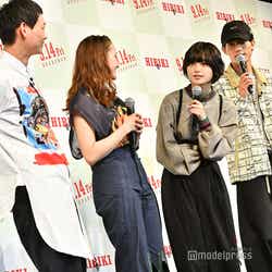 劇中では、同じ文芸部に所属する4人。平手演じる主人公である15歳の天才女子高生小説家・鮎喰響の幼なじみでともに文芸部に入部する椿涼太郎を演じる板垣は、平手との共演について「撮影前に平手友梨奈を好きになる動画を観まくった!(実際に会うと)逆に緊張しましたね」と回顧。それを聞いた平手は「やめていただきたい」とはにかんでいた。一方、部室にたむろする不良・塩崎隆也役の笠松は、「初日は一言も話してくれなくて…でも2日目に『なんて呼べばいいですか?』って話しかけてくれて、イチゴを食べました」と平手とのエピソードを披露した。