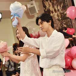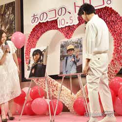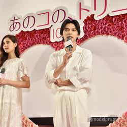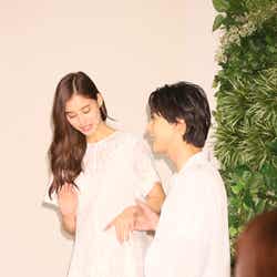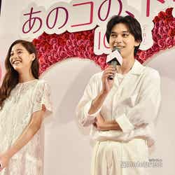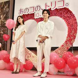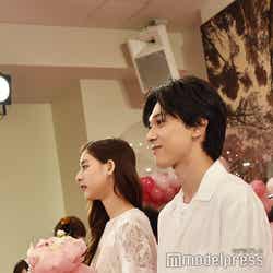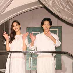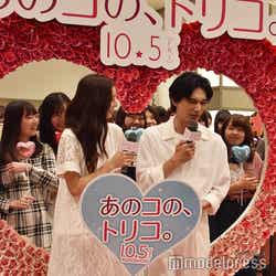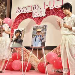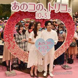 映画『あのコの、トリコ。』(10月5日公開)の「日本中のハートを“トリコ”イベント」が1日、都内の結婚式場で行われ、吉沢亮と新木優子が登壇。結婚式さながらの純白衣装で、会場にあしらわれたハート型のカーペットを歩き、約120人の観客から黄色い歓声を浴びた。