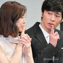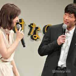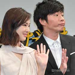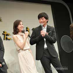 女優の北川景子と俳優の田中圭が8日、映画「スマホを落としただけなのに」(11月2日公開)の完成披露試写会に登壇した。