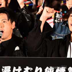 三代目J Soul Brothers from EXILE TRIBEの山下健二郎、劇団EXILEの佐藤寛太が14日、都内で開催された映画DTC -湯けむり純情篇- from HiGH&LOW」の大ヒット御礼舞台挨拶に出席した。