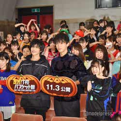 同作は、いじめをきっかけにバスケットボールから離れていた主人公・陽一(志尊)が、T校の弱小チームに加入し部員全員で団結しながら快進撃をみせていく、実話に基づいた物語。竹内は、大学バスケット界の人気選手・佐藤準役を演じる。ハロウィン当日ということもあり、会場に集まった約150人のファンはユニフォーム仮装でイベントに参加。2人は気になるユニフォームを探し、ファンに直接話しかけるなど、サービス精神たっぷりに盛り上げていた。(modelpress編集部)